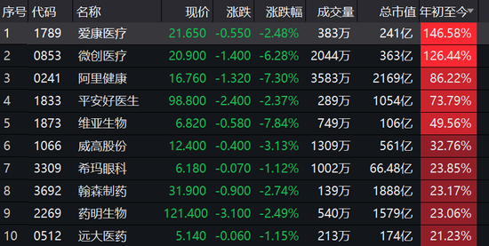 1)漲幅過大、估值殺。愛康醫(yī)療(21.95, -0.25, -1.13%)、微創(chuàng)醫(yī)療、阿里健康、平安好醫(yī)生(100.5, -0.70, -0.69%)等漲幅都超50%,市場上演估值殺。