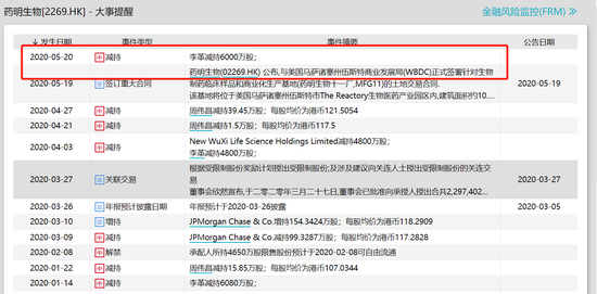 藥明生物(121, -3.50, -2.81%)也獲大股東不斷減持,5月20日公司董事局主席減持6000萬股,4月公司執(zhí)行董事不斷減持。